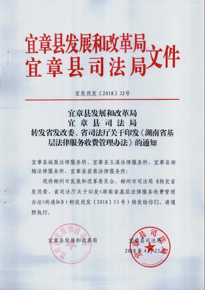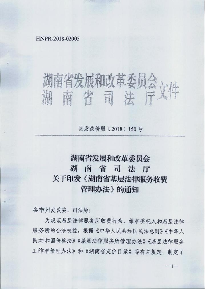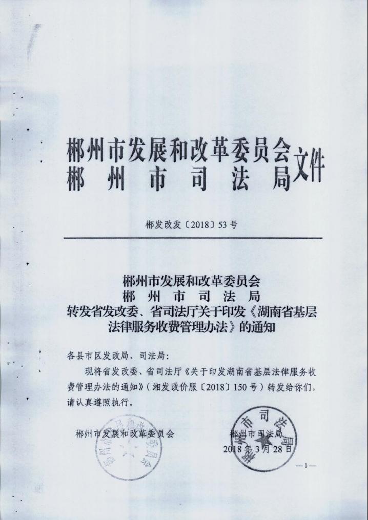 转发省发改委、省司法厅关于印发《湖南省基层法律服务收费管理办法》的通知