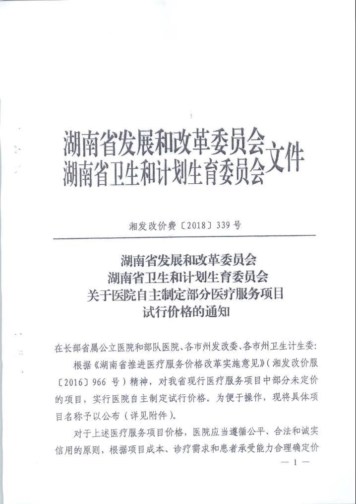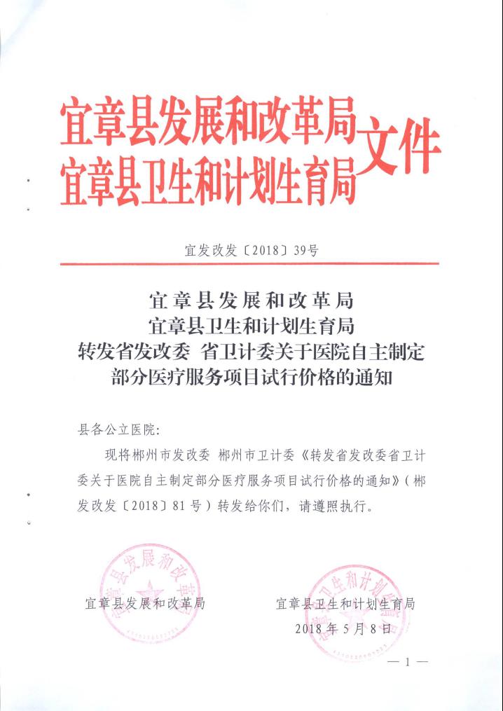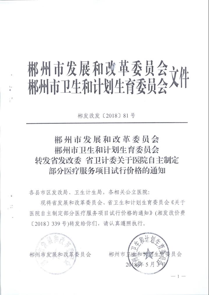转发省发改委 省卫计委关于医院自主制定部分医疗服务项目试行价格的通知