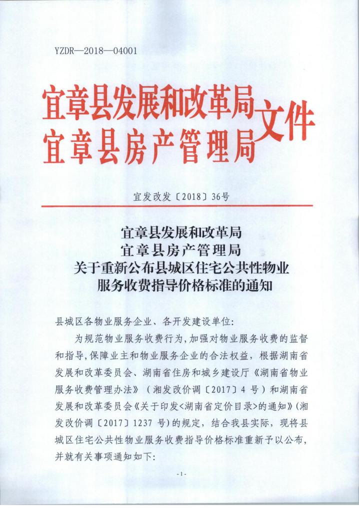 关于重新公布县城区住宅公共服务性物业服务收费指导价格标准的通知