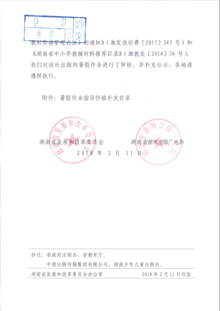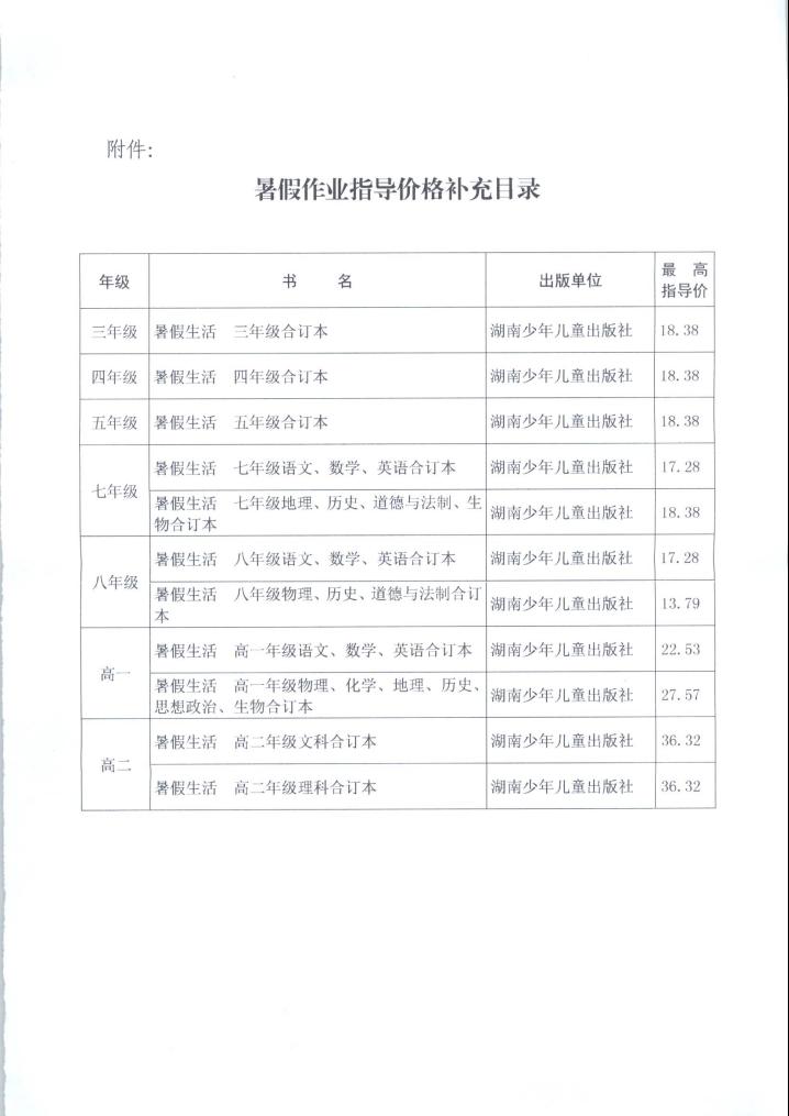 关于对春季教辅材料价格目录进行补充公示的通知