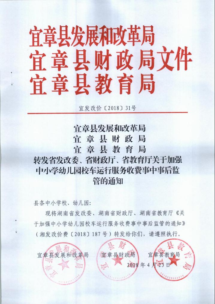 转发省发改委、省财政厅、省教育厅关于加强中小学幼儿园校车运行服务收费事中事后监管的通知