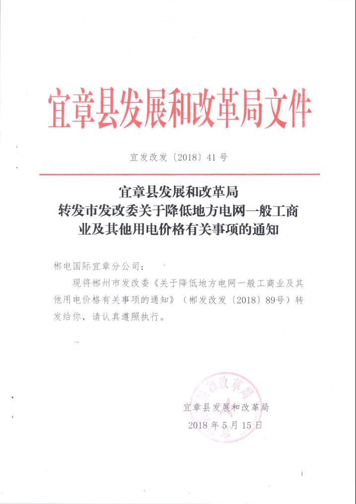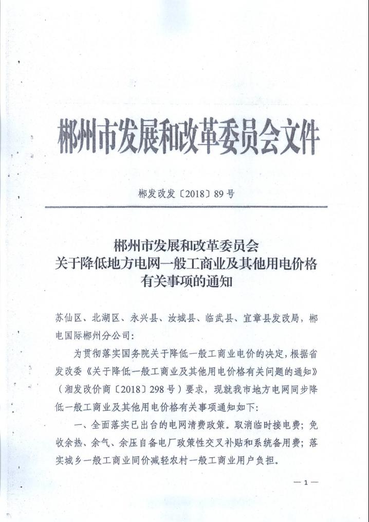转发市发改委关于降低地方电网一般工商业及其他用电价格有关事项的通知