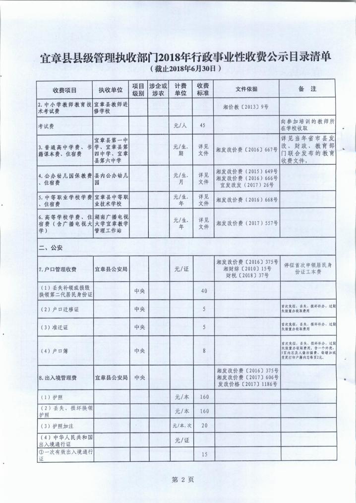 关于2018年度县直行政事业性收费标准和涉企行政事业性收费标准目录清单的公告