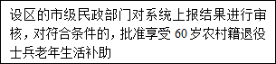 1.年龄在60周以上(含60周岁)农村籍退役士兵;