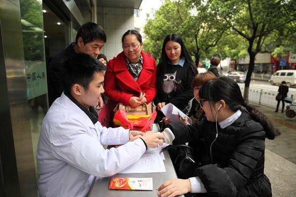 刚打算走进大厅的员工看到血站检验医生正在给自愿献血者量血压,便停留了下来自告奋勇要求加入到无偿献血队伍中来。