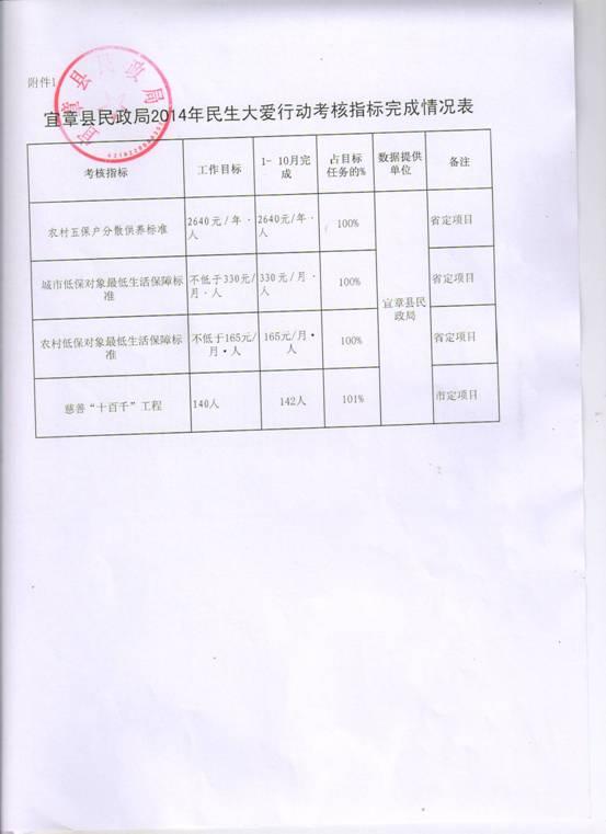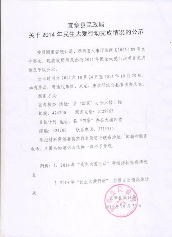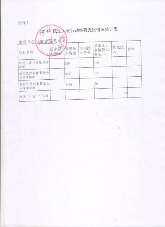 2014年民生大爱行动完成情况