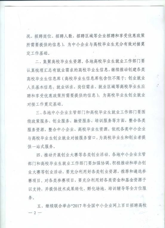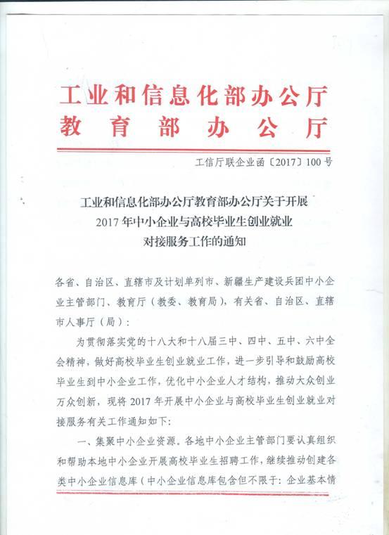 转发《工业和信息化部办公厅教育部办公厅关于开展2017年中小企业与高校毕业生创业就业对接服务工作的通知》